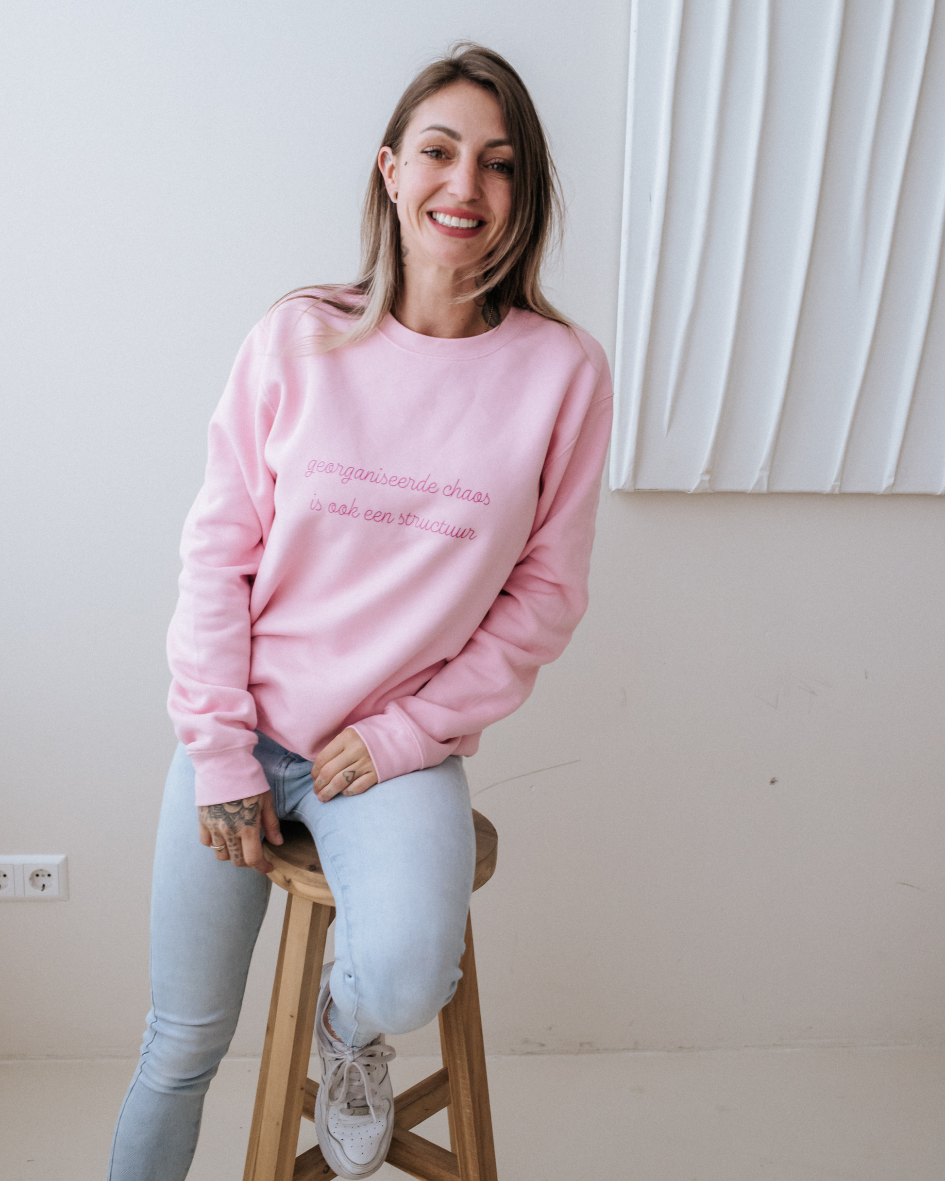 Georganiseerde chaos is ook een structuur - Roze Sweater