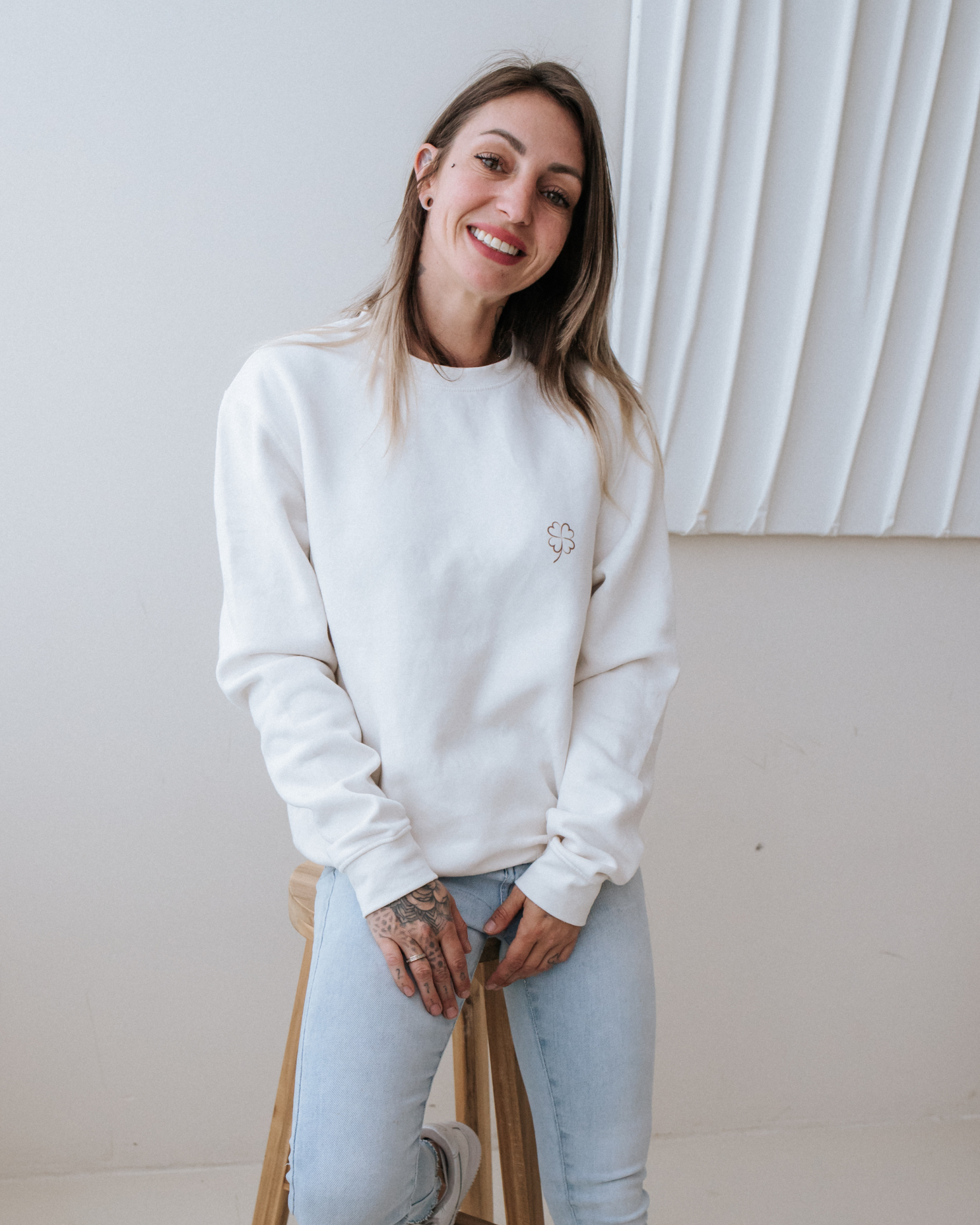 Samen twinnen in stijl! Deze schattige matching sweaters voor moeder en kind zijn perfect voor een gezellige dag samen. De truien hebben een zachte beige kleur met een subtiel klavertjevier op de borst - een klein detail met een grote betekenis: liefde, geluk en verbondenheid.