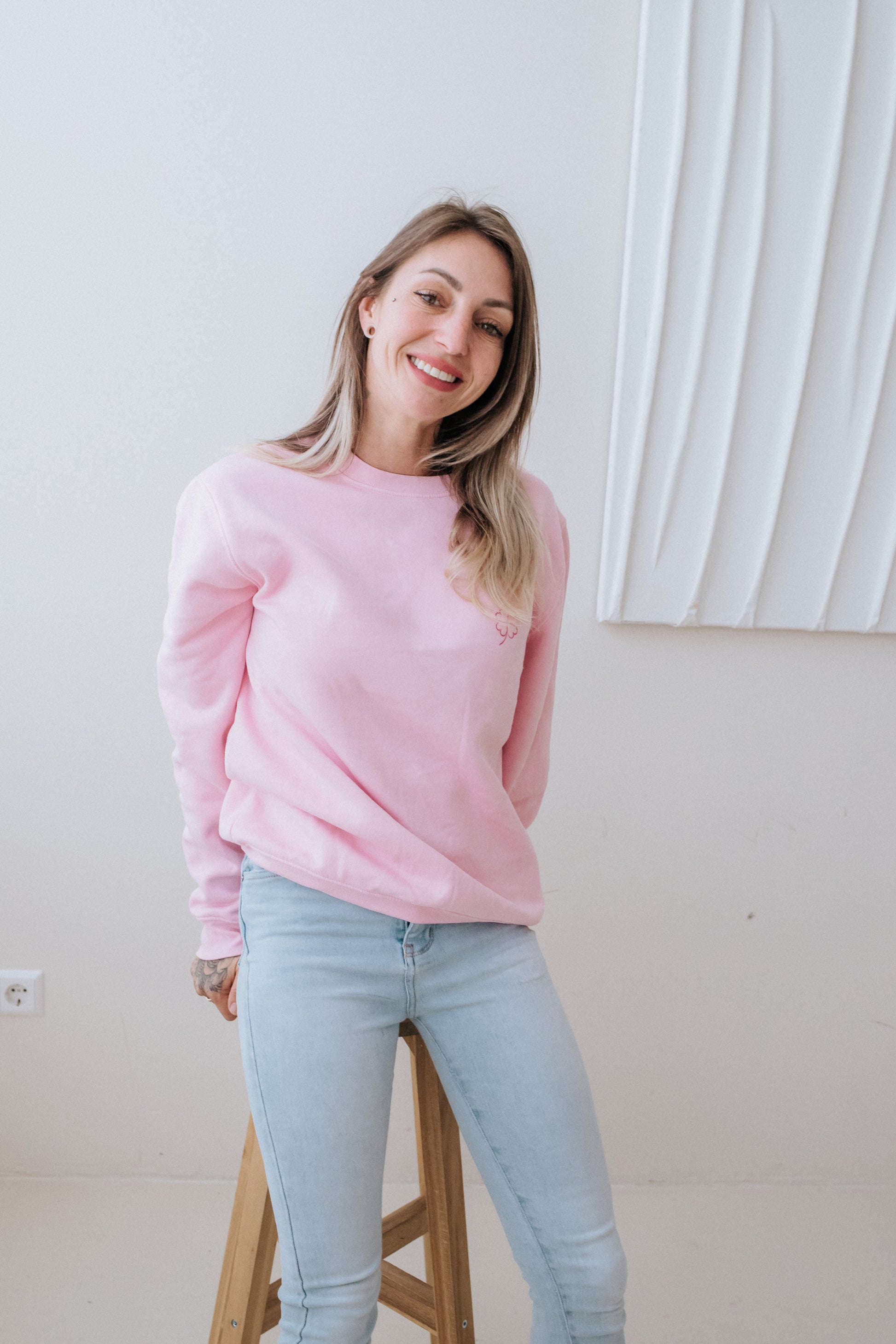 Samen twinnen in stijl! Deze schattige matching sweaters voor moeder en kind zijn perfect voor een gezellige dag samen. De truien hebben een zachte pastelroze kleur met een subtiel klavertjevier op de borst - een klein detail met een grote betekenis: liefde, geluk en verbondenheid.